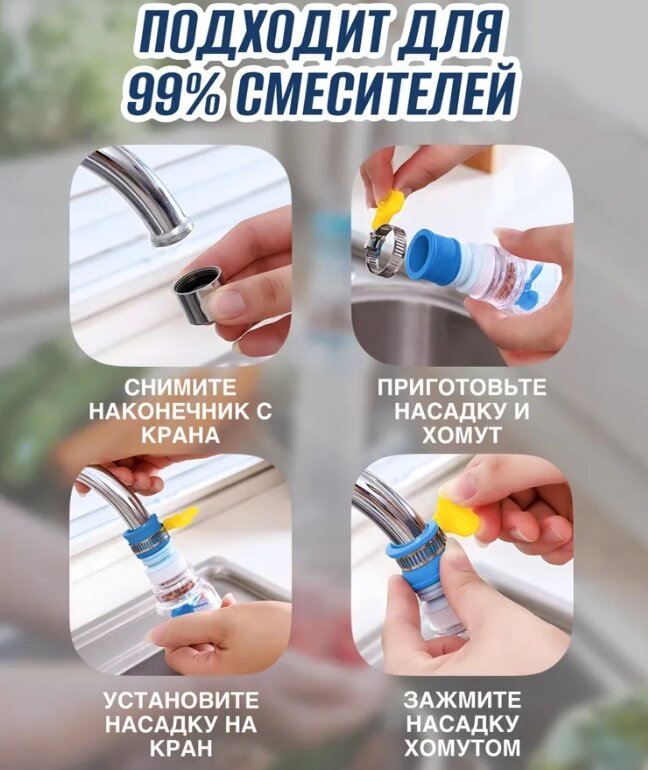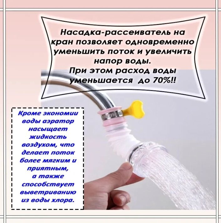 Насадка - фильтр для крана с поворотной головкой / Аэратор для экономии воды / Смягчение воды из под крана