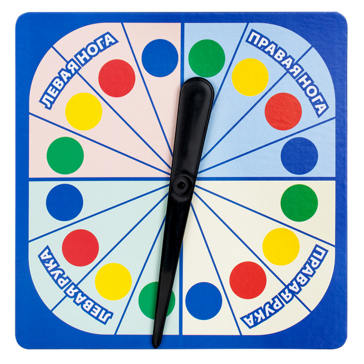 - "Твистер" игроки раскладывают поле на полу и в зависимости от того, на что указывает стрелка, передвигают руки или ноги на соответствующий круг;