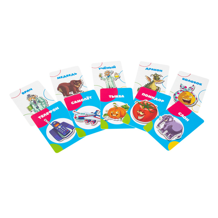 - "Угадай, кто?" игроки, не глядя на карточку, прикладывают её ко лбу и наводящими вопросами стараются угадать, какой персонаж указан на карточке.