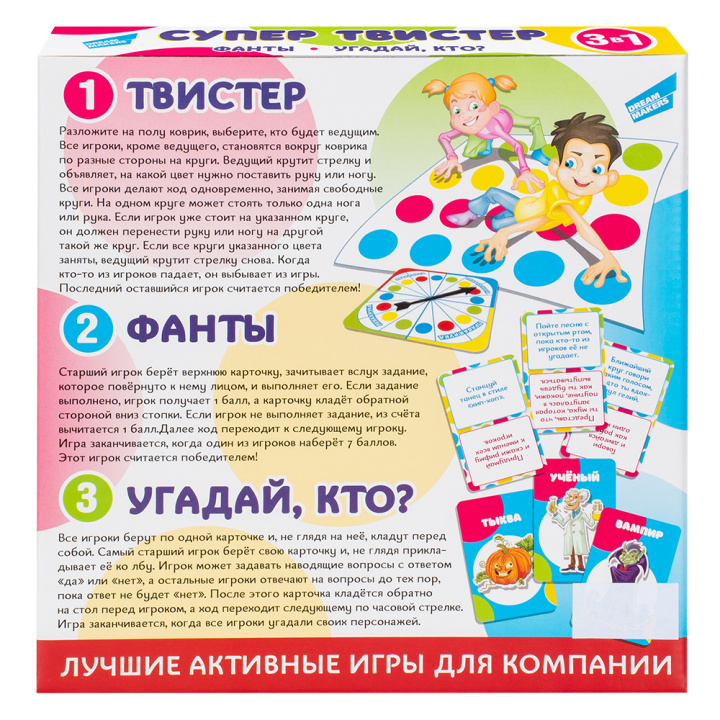 Настольная игра Dream Makers "Супертвистер 3в1. Твистер. Фанты. Угадай, кто?"