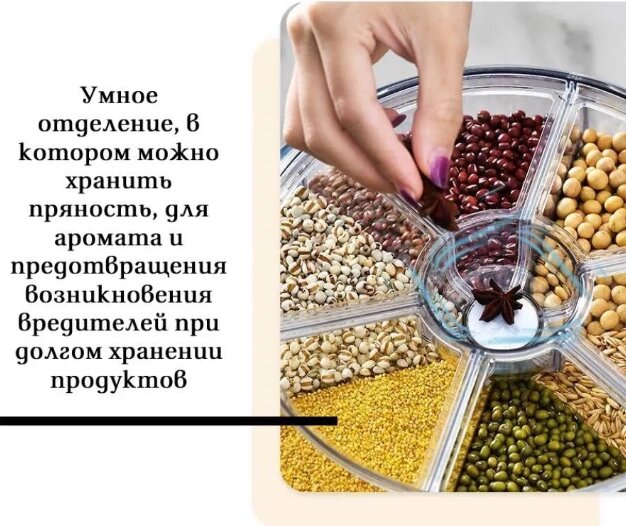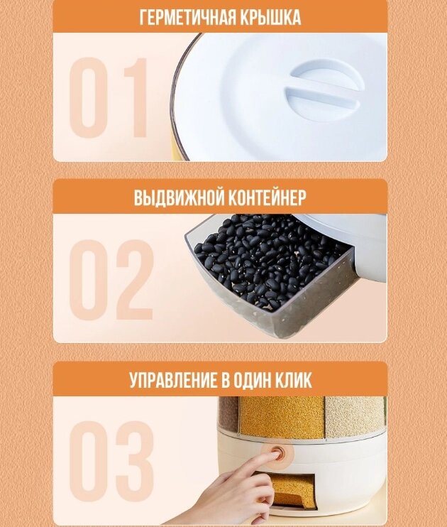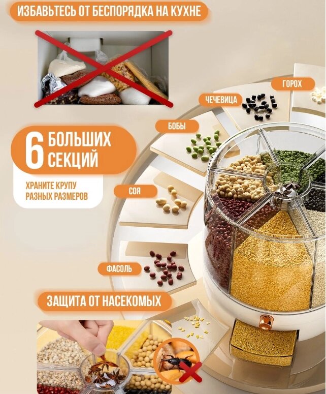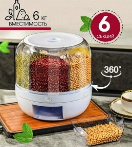 Диспенсер для круп и сыпучих продуктов 6 л. вращающийся на 360 градусов, с дозатором, круглый / кухонный