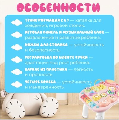 • Дополнительные элементы музыкальный блок, игровая панель, ножки для столика