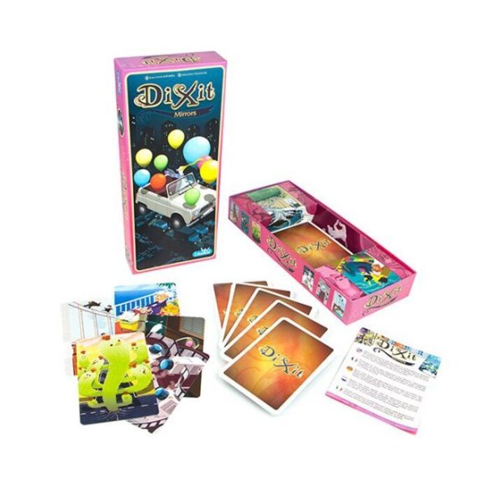 Dixit: Mirrors (Діксіт. Дзеркала) - це десяте доповнення до популярної настільної гри Діксіт. Розширення містить 84 нові карти, ілюстровані французьким художником Себастьяном Телескі (Sebastien Telleschi).