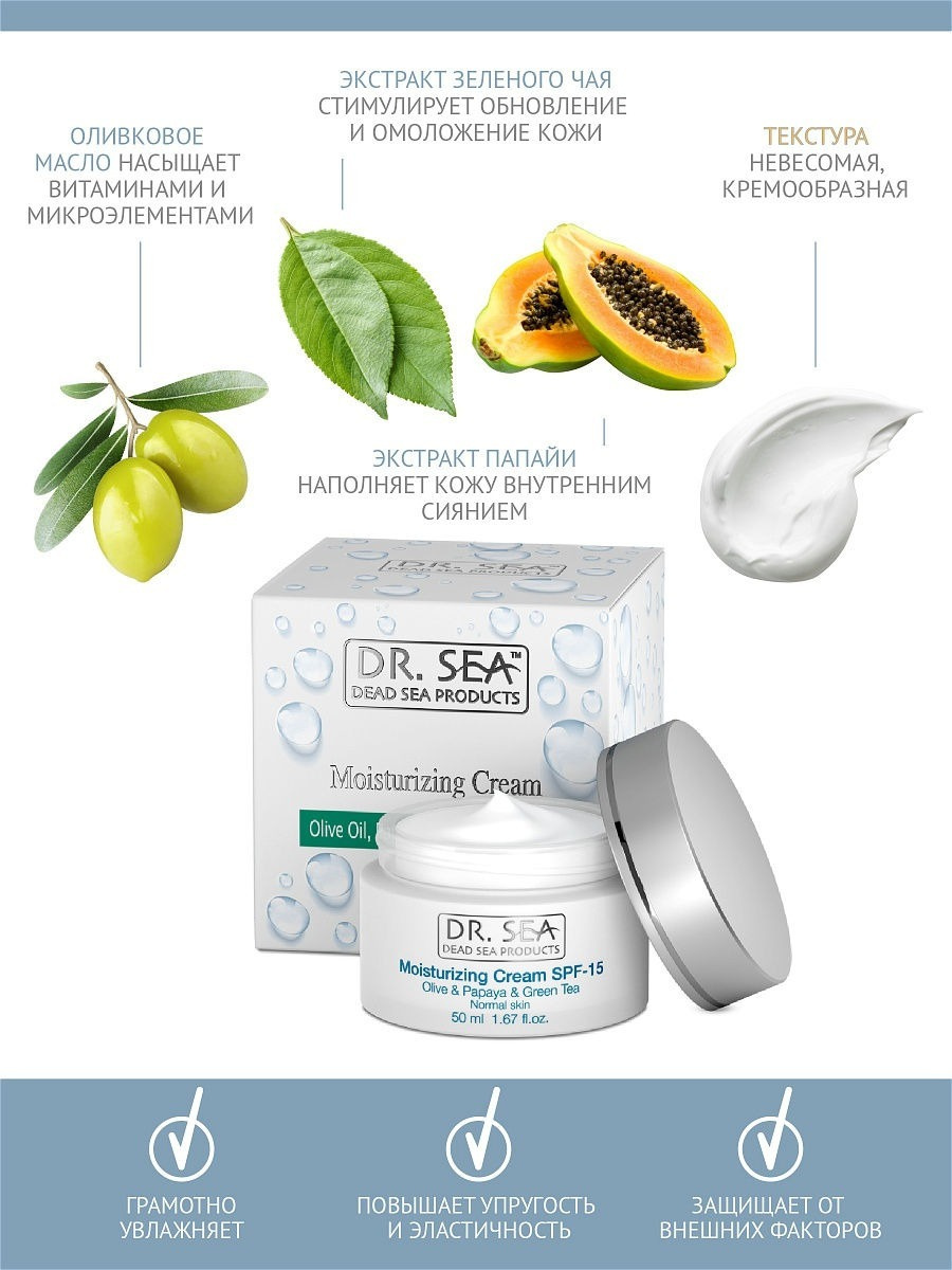 Dr.Sea Увлажняющий базовый крем для лица с маслом оливы, экстрактом папайи и зеленого чая SPF15