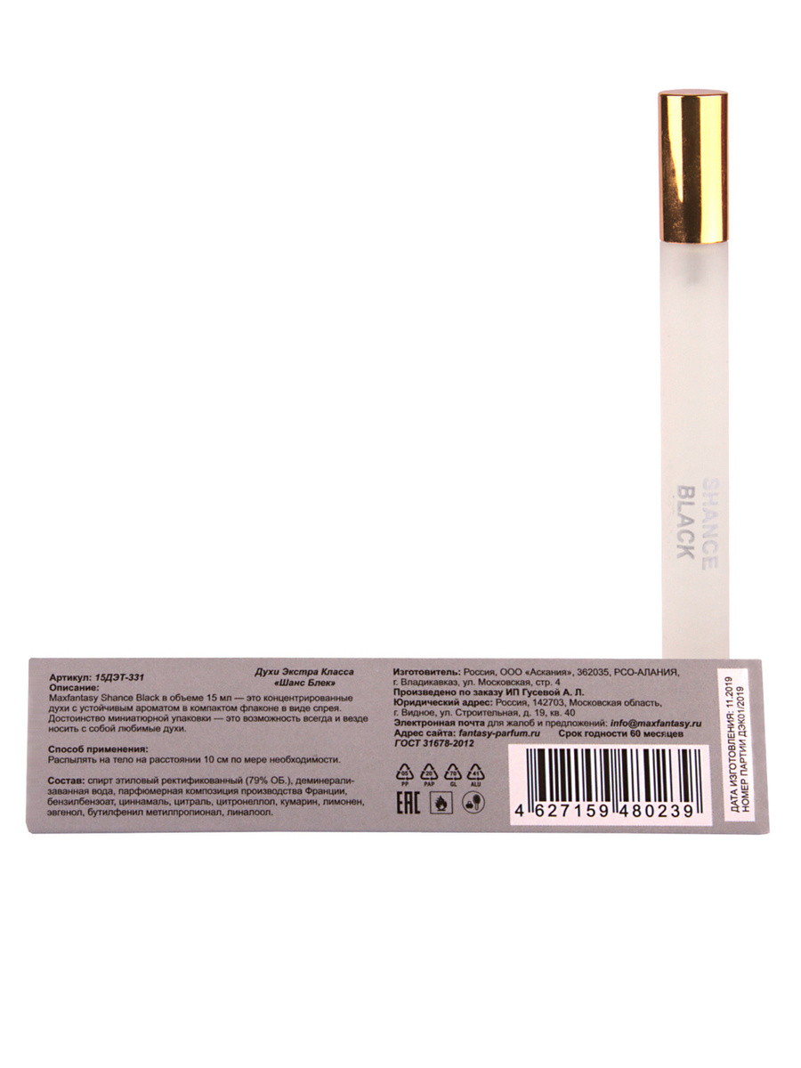 Maxfantasy Shance Black 15 мл Парфюмерная вода 15 мл
