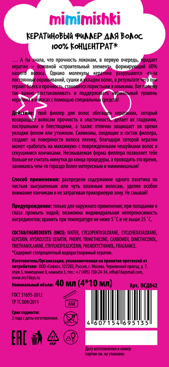 Филлер для волос кератиновый 100% КОНЦЕНТРАТ MIMIMISHKI