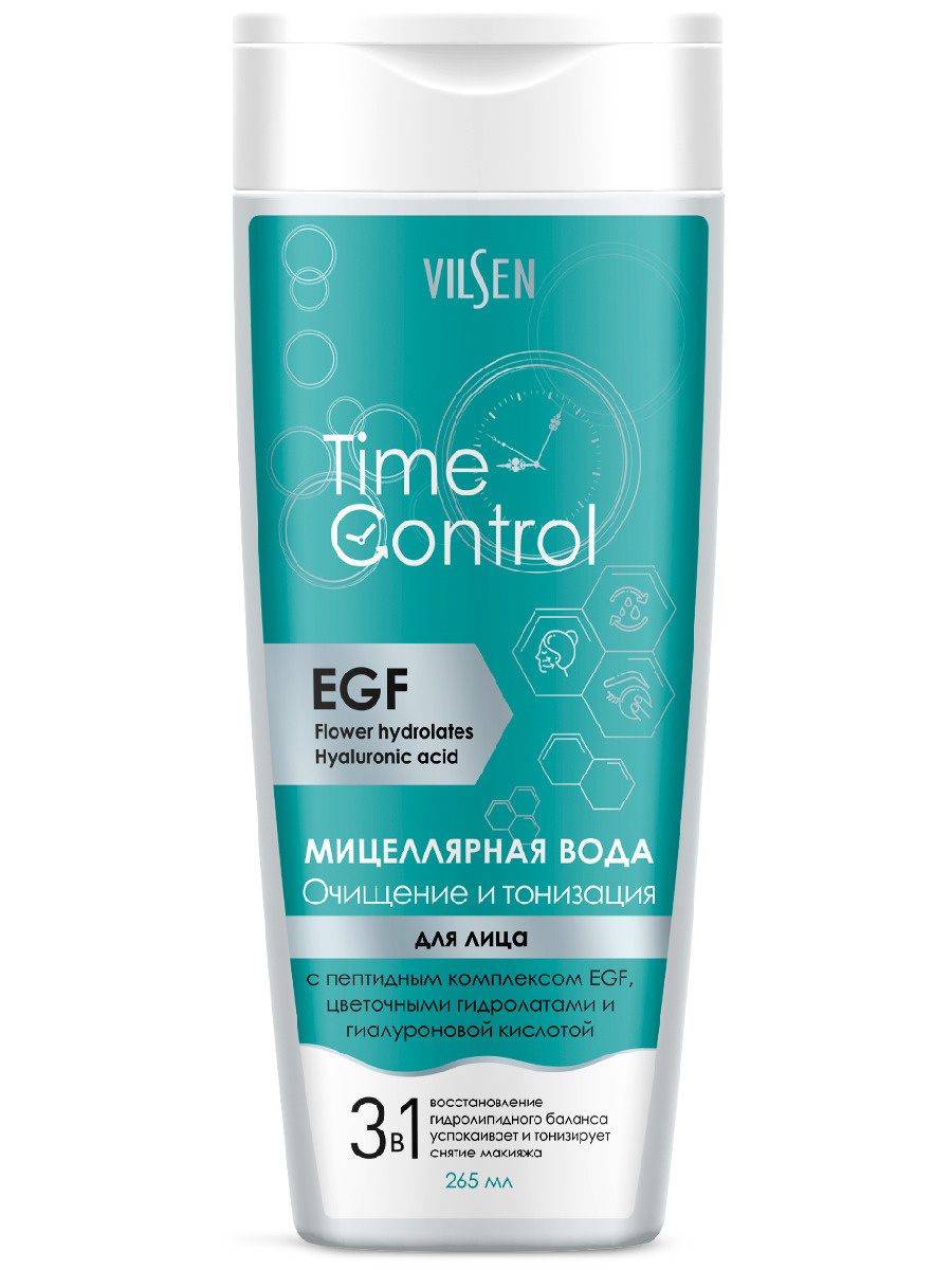 - Способ применения: Нанесите мицеллярную воду на ватный диск и круговыми движениями протрите лицо, снимая макияж. Не требует смывания водой. Используйте после каждого очищения кожи сыворотку или крем серии Time Control.