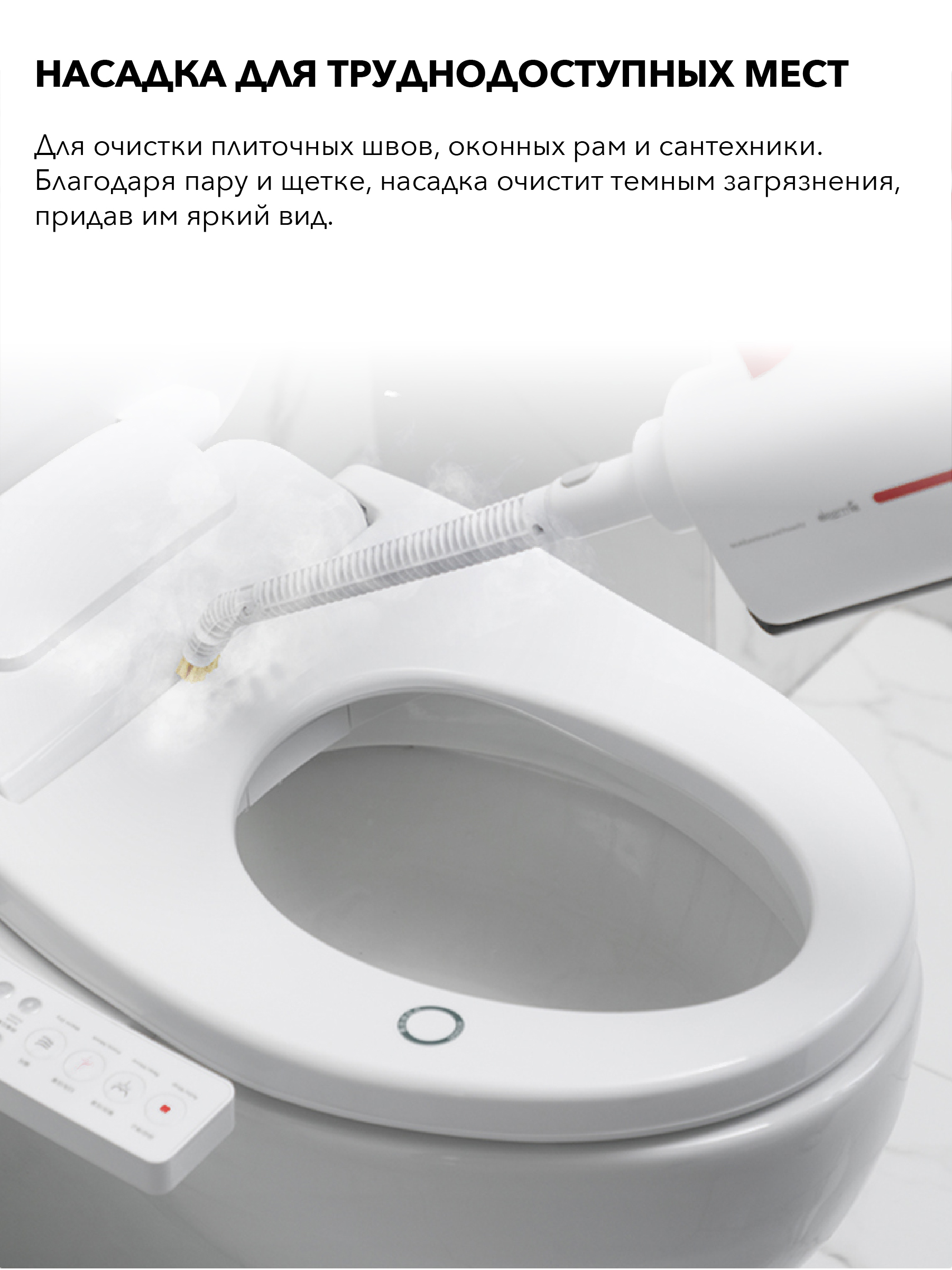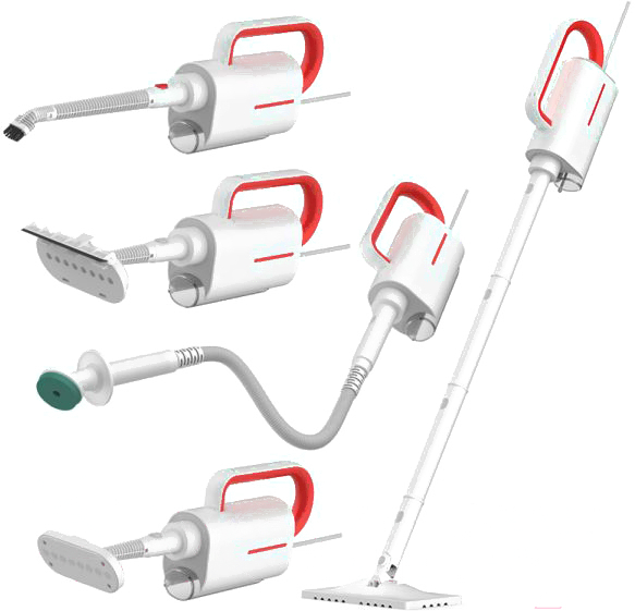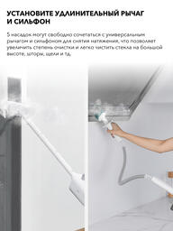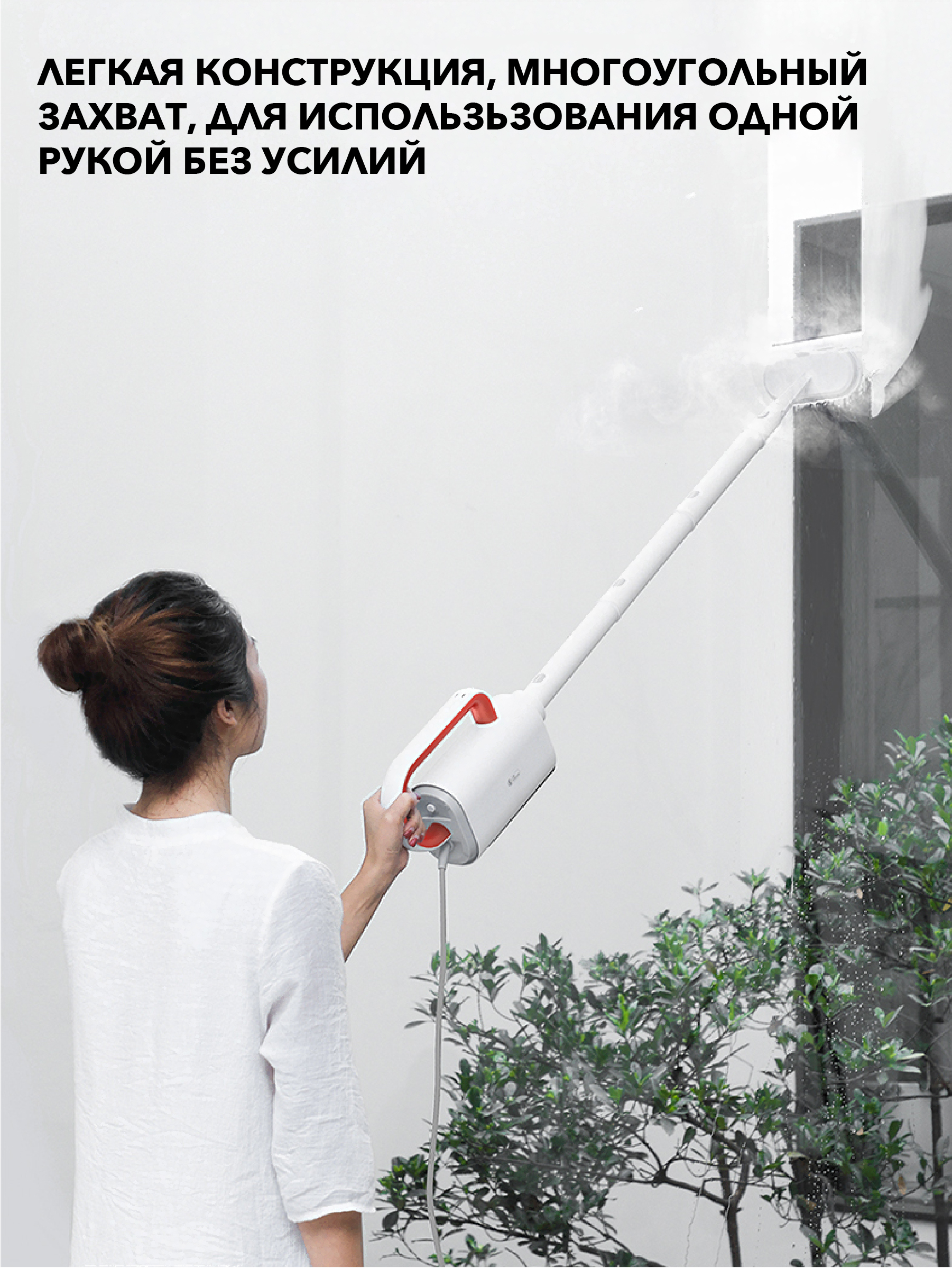 Комплектациякруглая щетка, насадка для мойки окон, насадка для мытья полов, сумка для аксессуаров (органайзер), насадка для отпаривания, чистящая губка