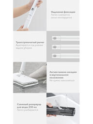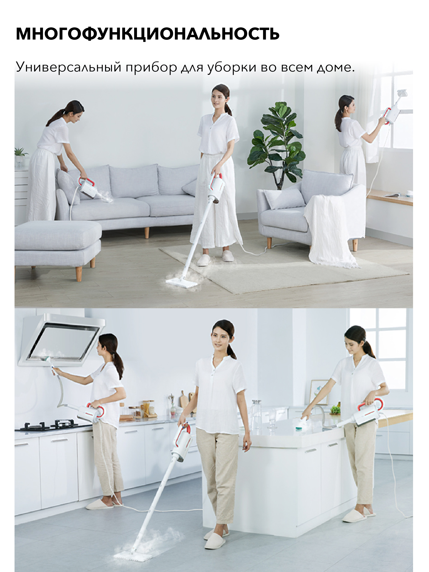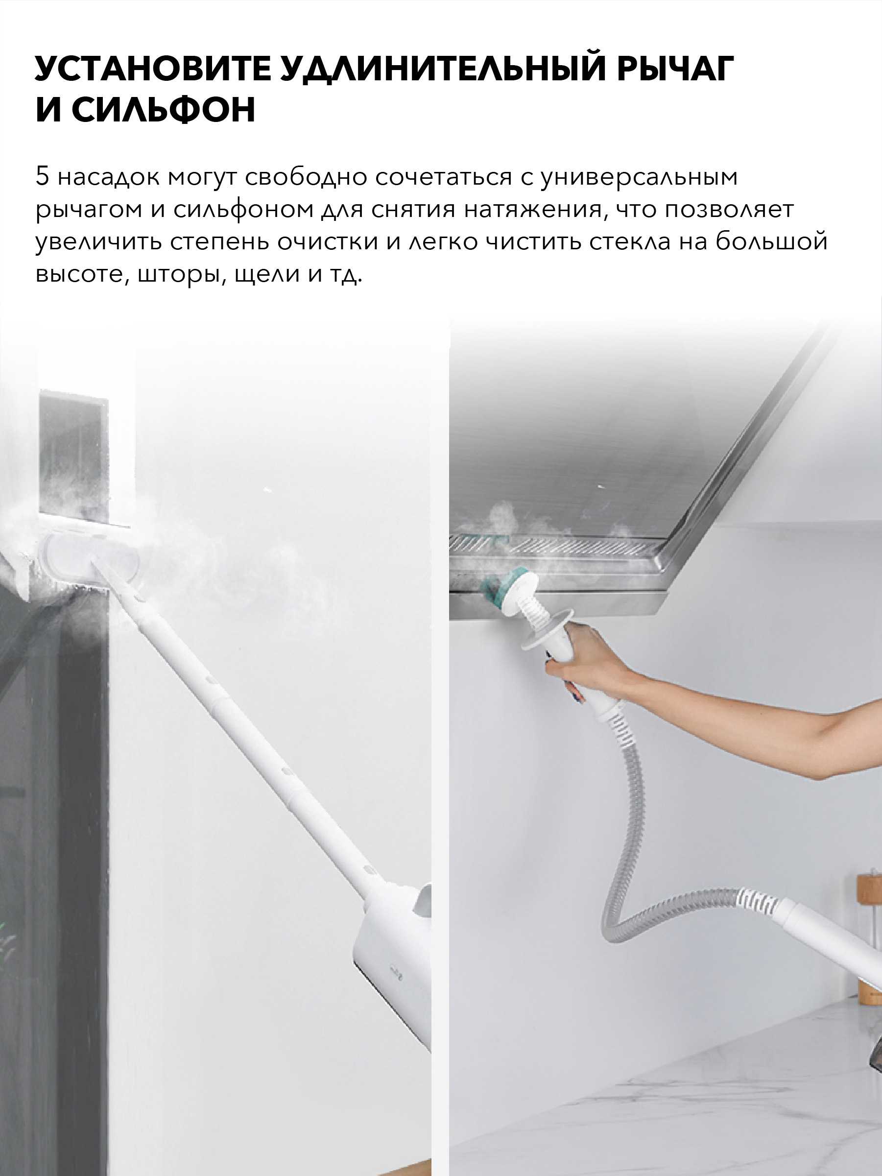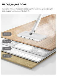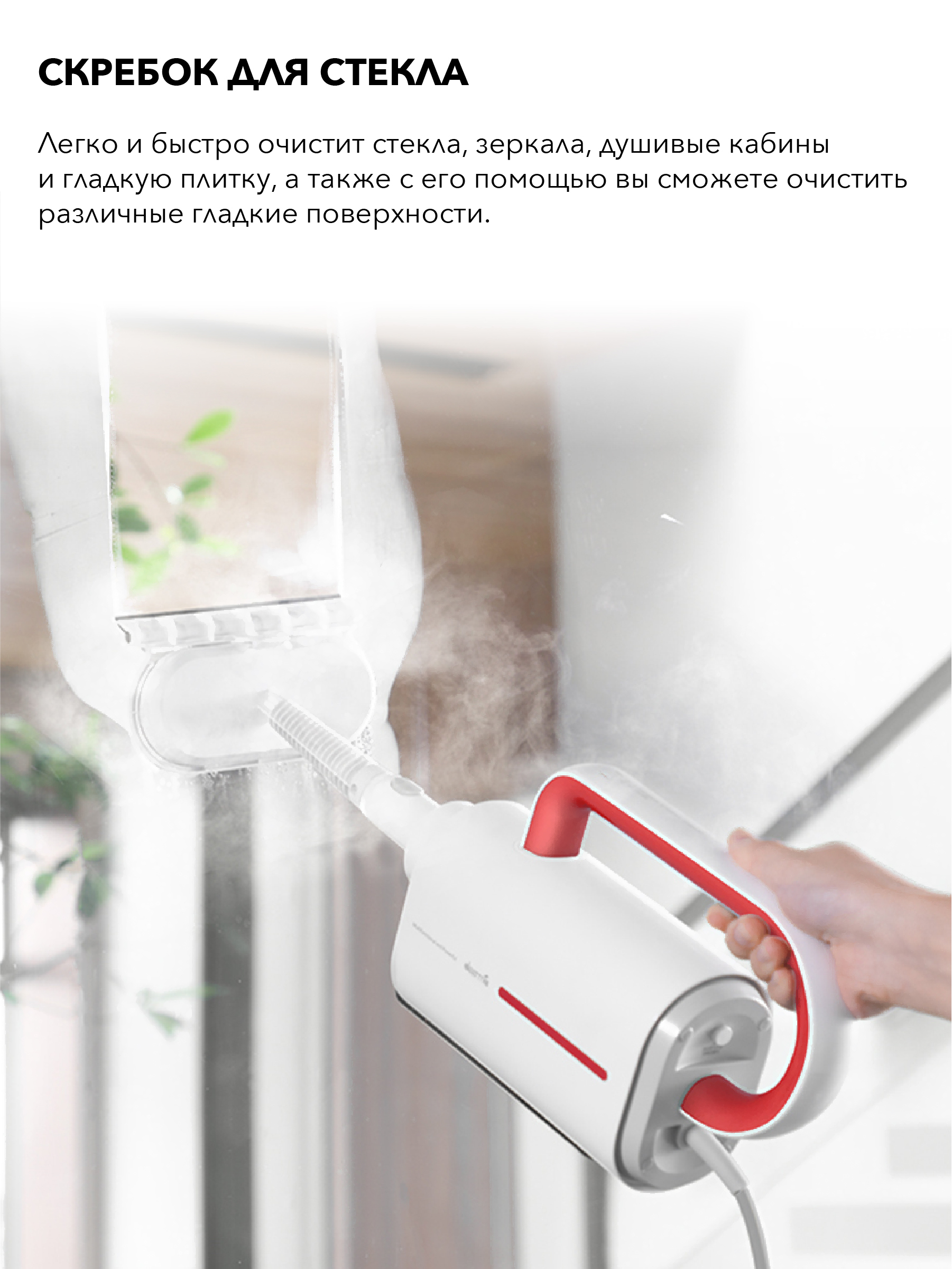 Комплектациякруглая щетка, насадка для мойки окон, насадка для мытья полов, сумка для аксессуаров (органайзер), насадка для отпаривания, чистящая губка