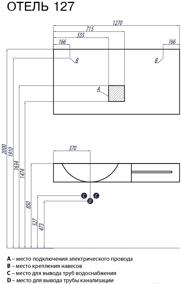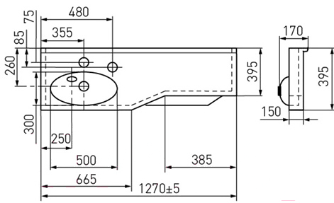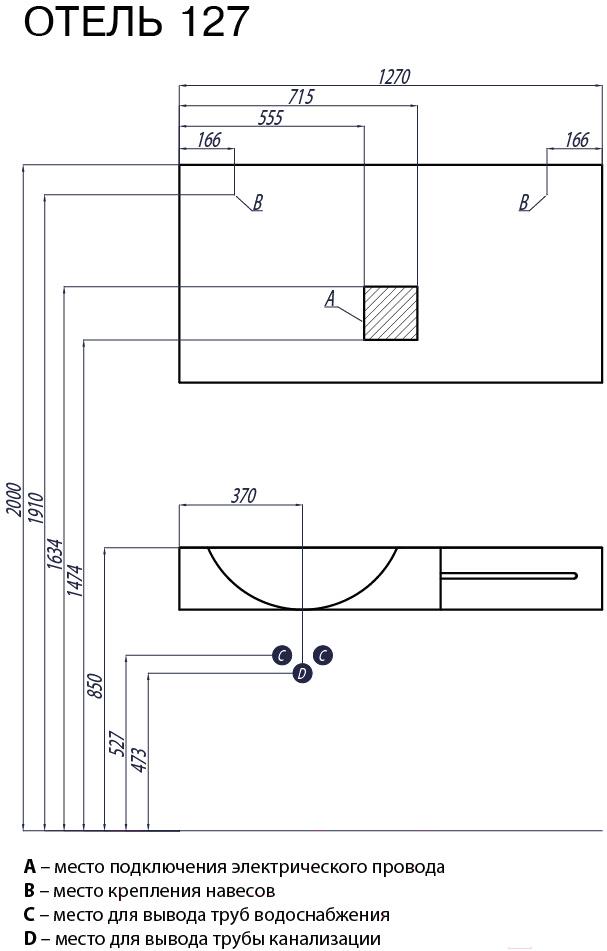 Умывальник Акватон Отель 2/1270 (1A70123WOT01R)