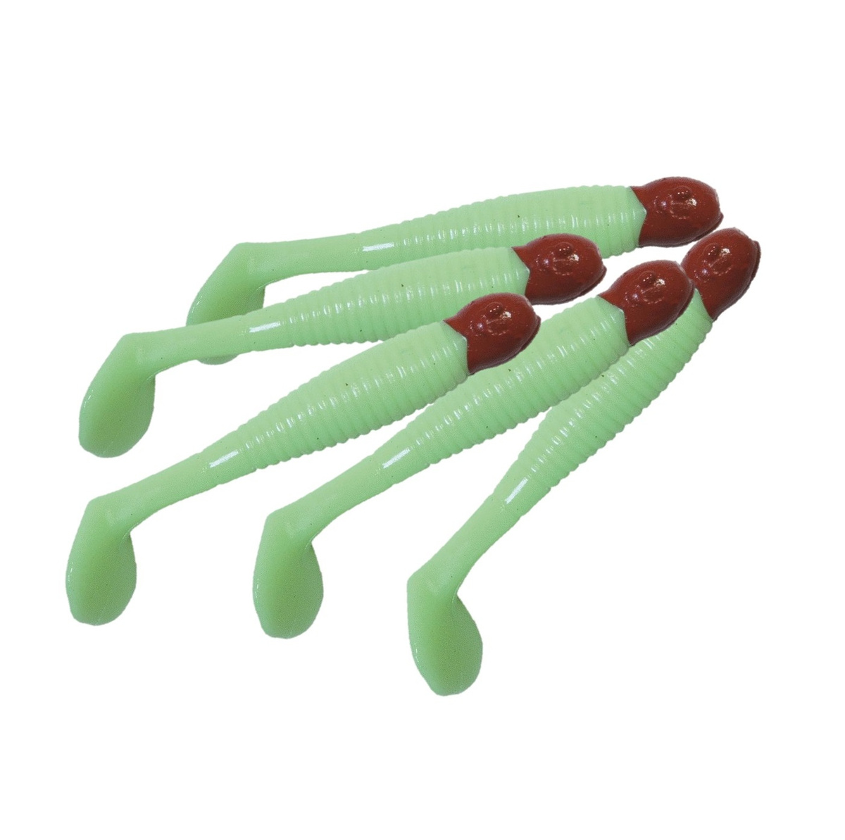 Светящиеся виброхвосты с красной головой, длина 4см, 2000781262657(набор 5шт)