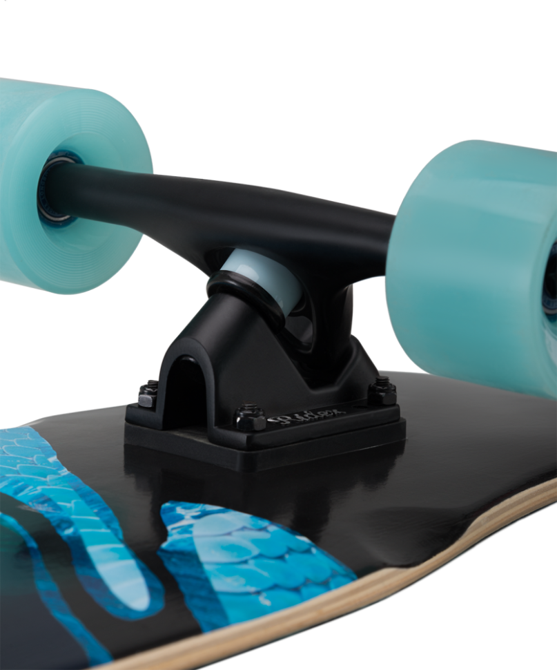 RIDEX Snake – запоминающийся лонгборд для тех, кто умеет брать от жизни по максимуму. Эффектный, стильный и надежный, он идеален для дайсинга, слайда, фрирайда и даунхилла. Традиционная конструкция, маневренность и стабильность на скорости - эта модель поможет вам выразить свою индивидуальность и продемонстрировать возможности. Универсальная подвеска Top Mount станет отличным выбором как для опытного райдера, так и для новичка. Широкие и мягкие колеса диаметром 70 мм помогут справиться с неровностями на асфальте, накатистые подшипники ABEC-9 Chrome сохранят скорость и улучшат разгон. Двойной конкейв упростит управление лонгбордом, а длинная и прочная дека из восьми слоев канадского клена выдержит нагрузку до 120 килограмм. Наслаждайтесь своим путешествием, не отвлекаясь от собственных эмоций: ниши для колес предотвратят закусывание колес во время движения. Snake – идеальная доска для скоростных и техничных поездок. Впечатляйте окружающих мастерством и, конечно, эффектным дизайном своего лонгборда!\nПреимущества:\nПодходит для преодоления больших расстояний;\nШирокие и мягкие колеса сглаживают неровности асфальта;\nМаневренная модель;\nНакатистые подшипники ABEC-9;\nНиши для колес;\nПодвеска Top Mount.\nХарактеристики:\nРазмер деки: 44\nМатериал деки: 8 слоев канадского клена\nШкурка: OWA80\nРазмер подвески: 7"\nМатериал подвески: алюминий\nПрокладка (рейзеры, высота, мм): 6\nБушинги, жесткость: 85А\nБушинги, материал: ПУ\nКолеса, размер, мм: 70 x 51\nКолеса, жесткость, A: 78А\nМатериал колес: ПУ\nПодшипники: ABEC-9 Chrome\nТип упаковки: прозрачный пакет\nМаксимальный вес пользователя, кг: 120