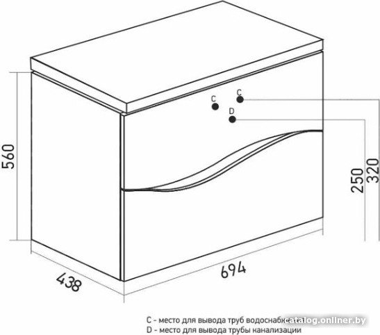 - Под умывальник шириной 70 см