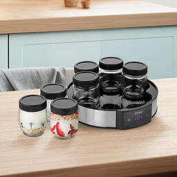 ОписаниеЙогуртница КТ-6295 предназначена для приготовления вкусного и полезного домашнего йогурта, а также для других натуральных продуктов на основе молока и не только. Благодаря баночкам лакомство получается порционным, что удобно для употребления и хранения.