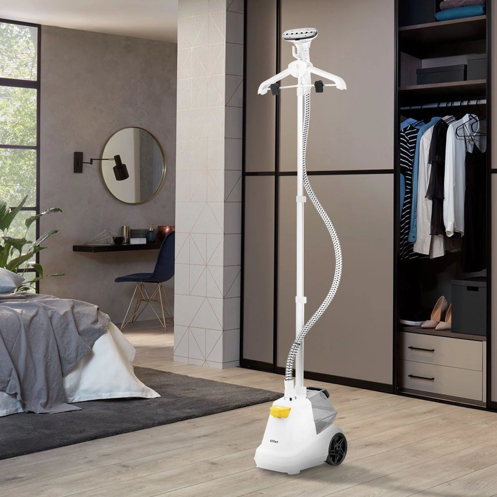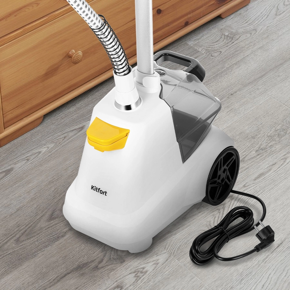 ОписаниеВертикальный отпариватель Kitfort КТ-9155 позволяет прогладить любые вещи и изделия из текстиля даже со сложной текстурой, которые обычно не гладят. Кроме глажки и отпаривания он обрабатывает вещи мощной струёй горячего пара, проводя чистку и дезинфекцию.