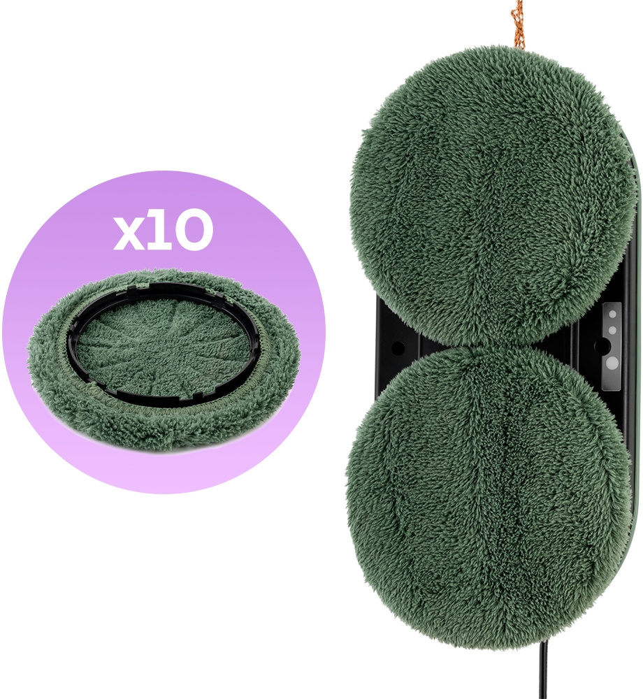 КомплектацияРобот для мойки окон, бутылка для воды с крышкой, пульт ДУ, батарейки ААА - 2 шт., держатель тряпки - 4 шт., блок питания, шнур питания, страховочный тросс с карабином, тряпка - 10 шт.