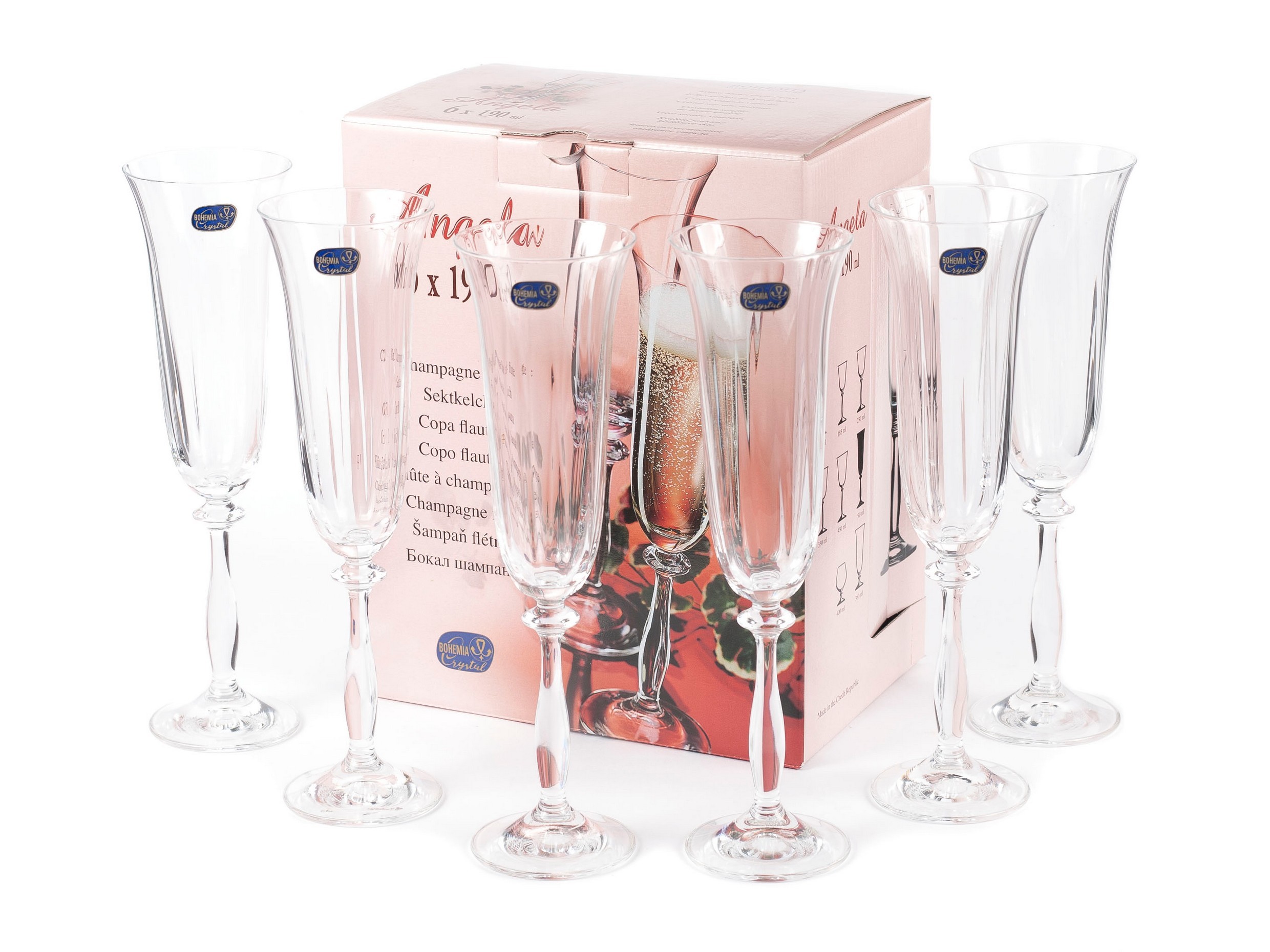 НАБОР БОКАЛОВ ДЛЯ ШАМПАНСКОГО стеклянных граненых “Angela” 6 шт. 190 мл (арт. 40600/1/190)