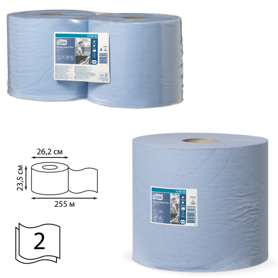 Заводская упаковка нарушена или отсутствует. Товар НОВЫЙ, в полной комплектации. / Производится по технологии сушки горячим воздухом из натуральной целлюлозы+переработанное сырье. Обладает высокой прочностью, быстро впитывает масло и масложировые загрязнения. Подходит для очистки различных деталей от загрязнений на любом производстве. Тип товара: бумага протирочная. Артикул: 130052. Диспенсерная система: W1, W2. Серия: Premium. Перфорация: да. Длина намотки: 255 м. Диаметр рулона: 26.2 см. Ширина рулона: 23.5 см. Количество листов в рулоне/пачке: 750 шт. Количество слоев: 2. Ширина листа: 23.5 см. Длина листа: 34 см. Цвет: голубой. Наличие втулки: да. Количество в комплекте: 2 шт. Бренд - TORK. Производитель - Германия. Артикул - 130052. Штрихкод - 7322540183580