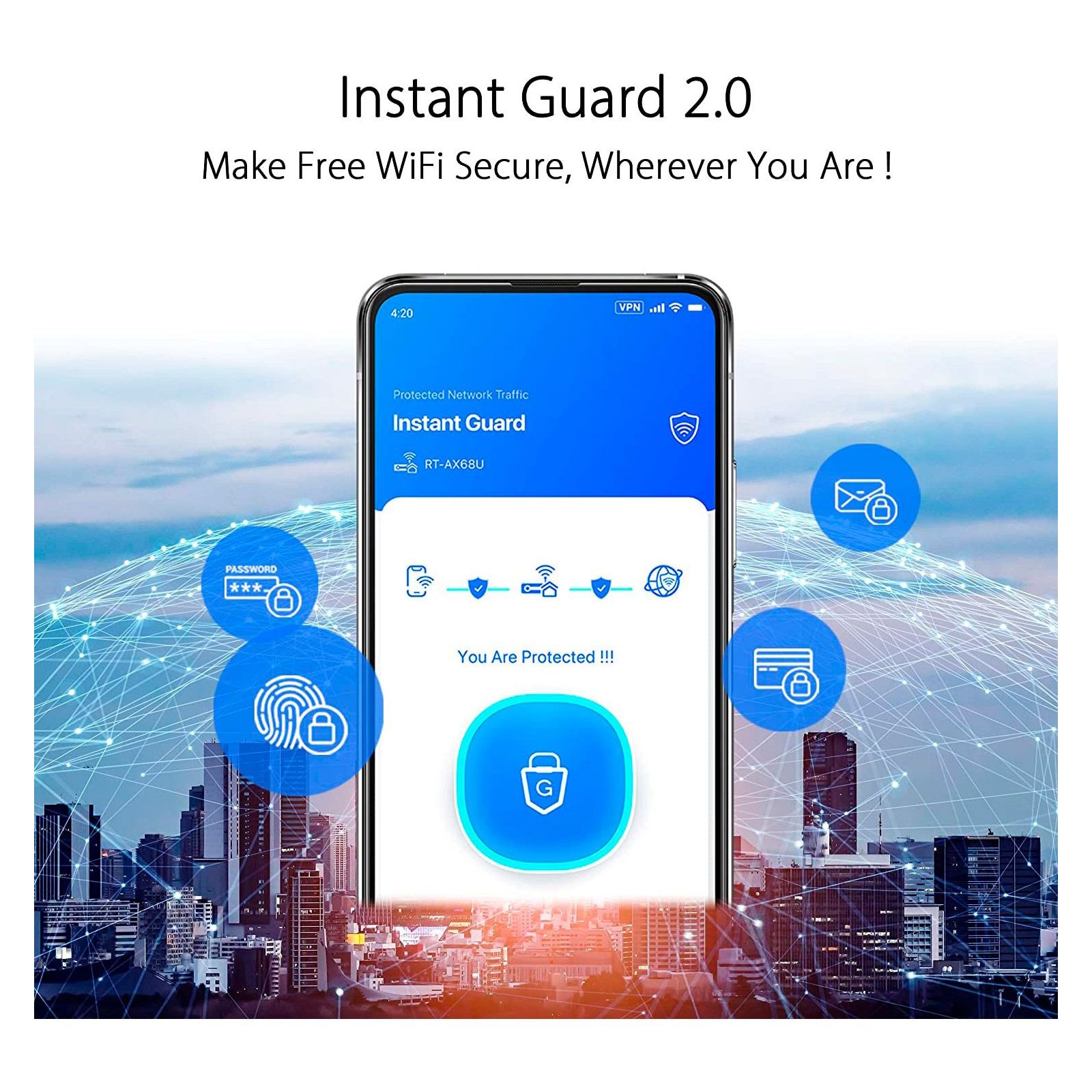 Загальнодоступні мережі Wi-Fi, які зустрічаються в кафе, готелях, аеропортах та інших громадських місцях, рідко бувають захищеними, тому хакери можуть легко перехопити дані, які ви відправляєте в них під час підключення до Інтернету. Де б ви не були, технологія ASUS Instant Guard забезпечує безпечний доступ до Інтернету за допомогою маршрутизатора RT-AX5400. Наш оновлений застосунок дозволяє легко ділитися цим мережевим з’єднанням зі своєю родиною та друзями за допомогою URL-посилання.