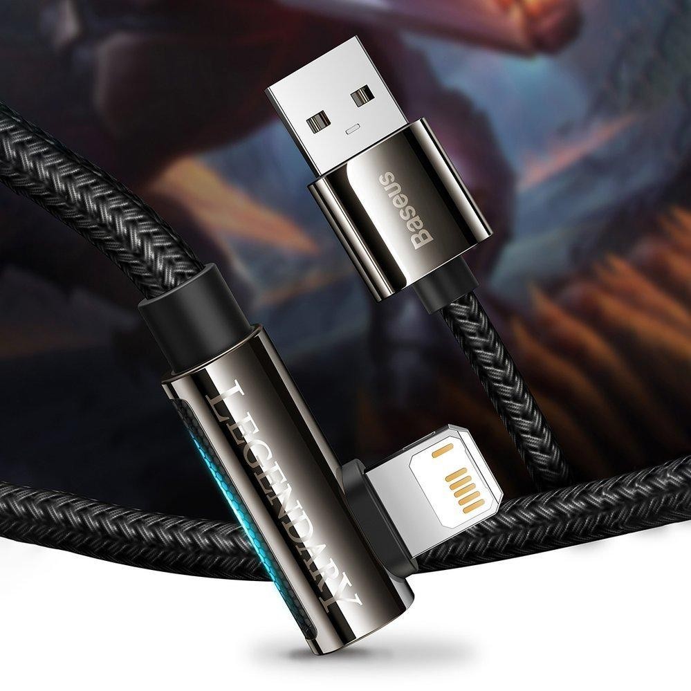 Кабель USB AM-Lightning M, 1 м, 2.4A, 90° Синій, Legend Series Elbow CACS Baseus