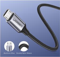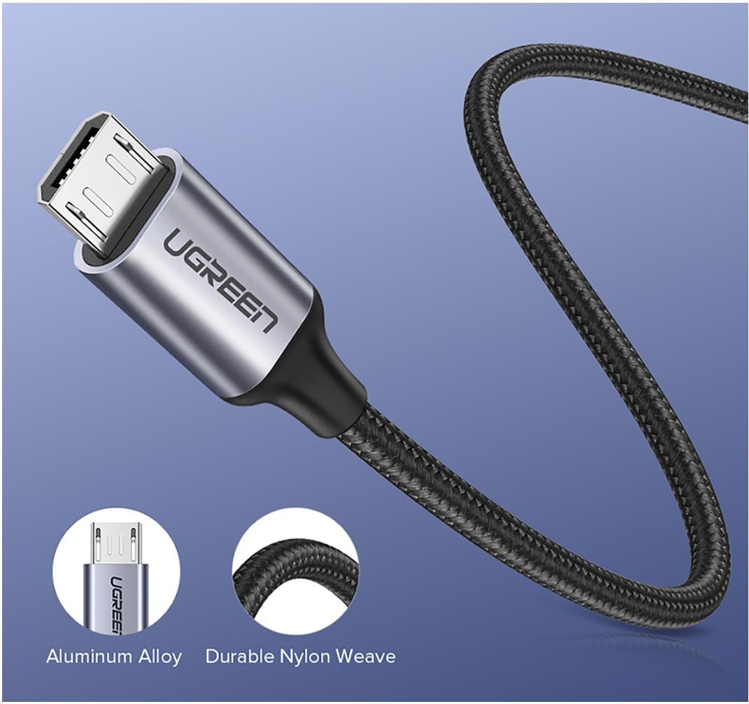 Нейлонове обплетення кабелю UGREEN USB 2.0 AM to Micro 5P 1.5m US290 Black (US290/60147) і штекери з алюмінієвого сплаву гарантують тривалу і надійну роботу.