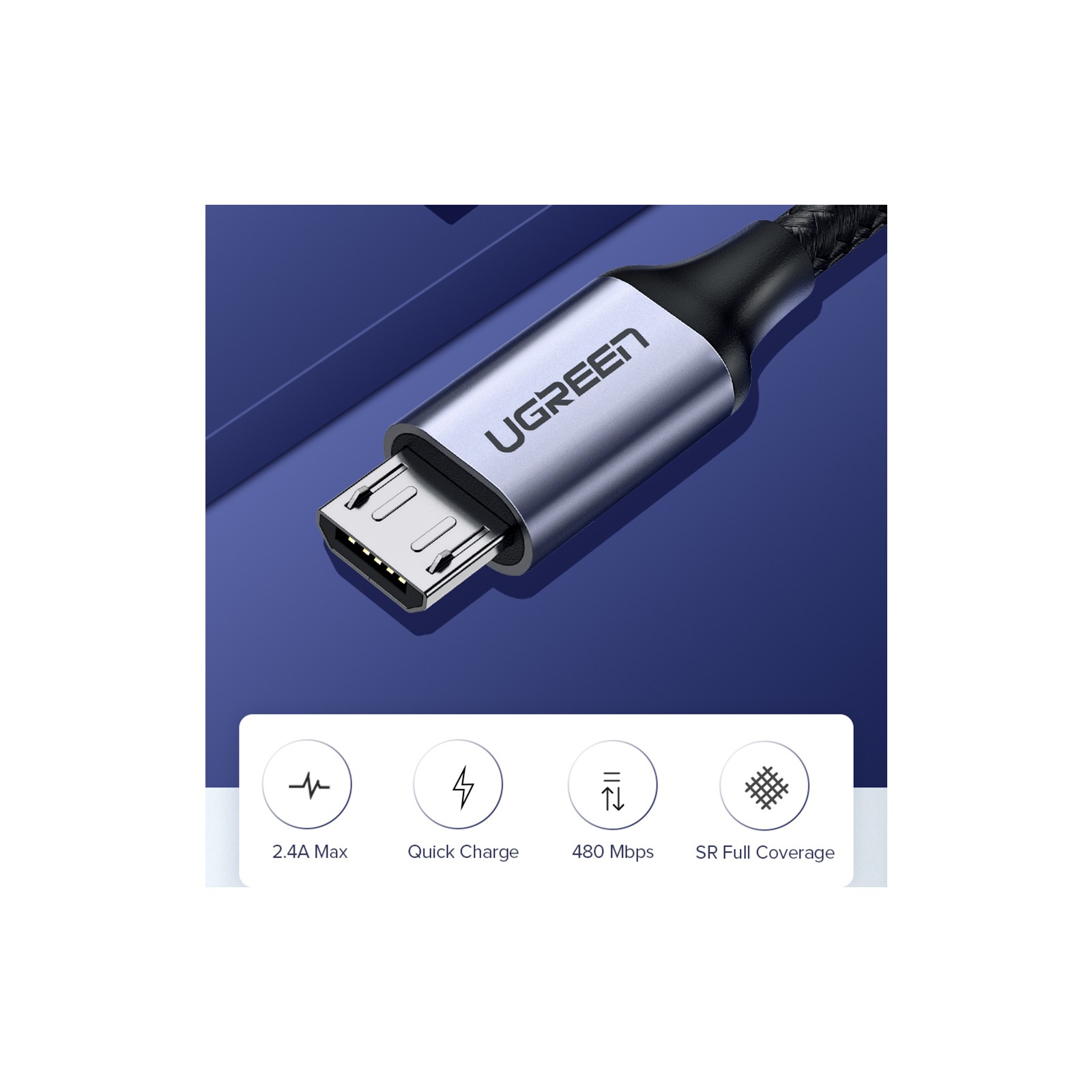 Кабель підтримує режим швидкої зарядки Qualcomm 3.0 і силу струму 3А (Max). Крім того, підтримується швидкий обмін даними (до 480 мб/с). Вдосконалений штекер з додатковим захистом кабелю від зламу робить під'єднання кабелю до зарядного пристрою простішим завданням.