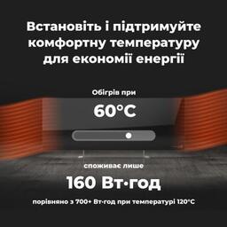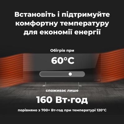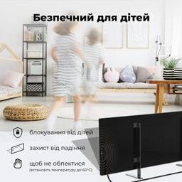 ДодатковоCE, RED, RoHs, REACH, WEEE, TUV (CE), IP44, інфрачервоний + конвекційний спосіб обігріву, замок від дітей, захист від перегріву, захист від перегріву, мікотермічний нагрівальний елемент, не спалює кисень, не сушить повітря, низьке енергоспоживання від 160 Вт/год до 700+ Вт, плавне регулювання температури, регулювання температури панелі від 60°C до 120°C, сенсор перекидання, управління через мобільний додаток AENO: дистанційне налаштування часу, встановлення температури опалення, моніторинг споживання електроенергії приміщення, фірмові технології SMART INTELLIGENCE, швидкий старт