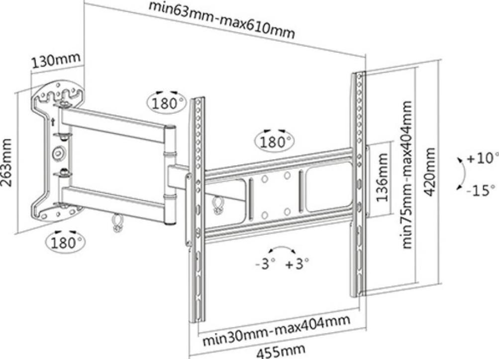 Кронштейн BRATECK LPA52-446 вміщує більшість 32 "-55" плоских телевізорів до 35кг. Це кріплення простягається на 610 mm від стіни і дає можливість повного руху. Повний рух забезпечує максимальну гнучкість - нахил телевізора для зручного перегляду з будь-якого місця в кімнаті. Після установки і регулювання цей кронштейн забезпечує ідеальне розташування на стіні. Інтегрована система управління кабелями тримає кабелі організовано і захищено.