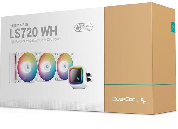 Deepcool LS720 — рідинний процесорний кулер преміумклас забезпечує максимальну ефективність охолодження та низький рівень шуму завдяки радіатору діаметром 360 мм, трьом вентиляторам FC120 A-RGB PWM і дзеркальній кришці.