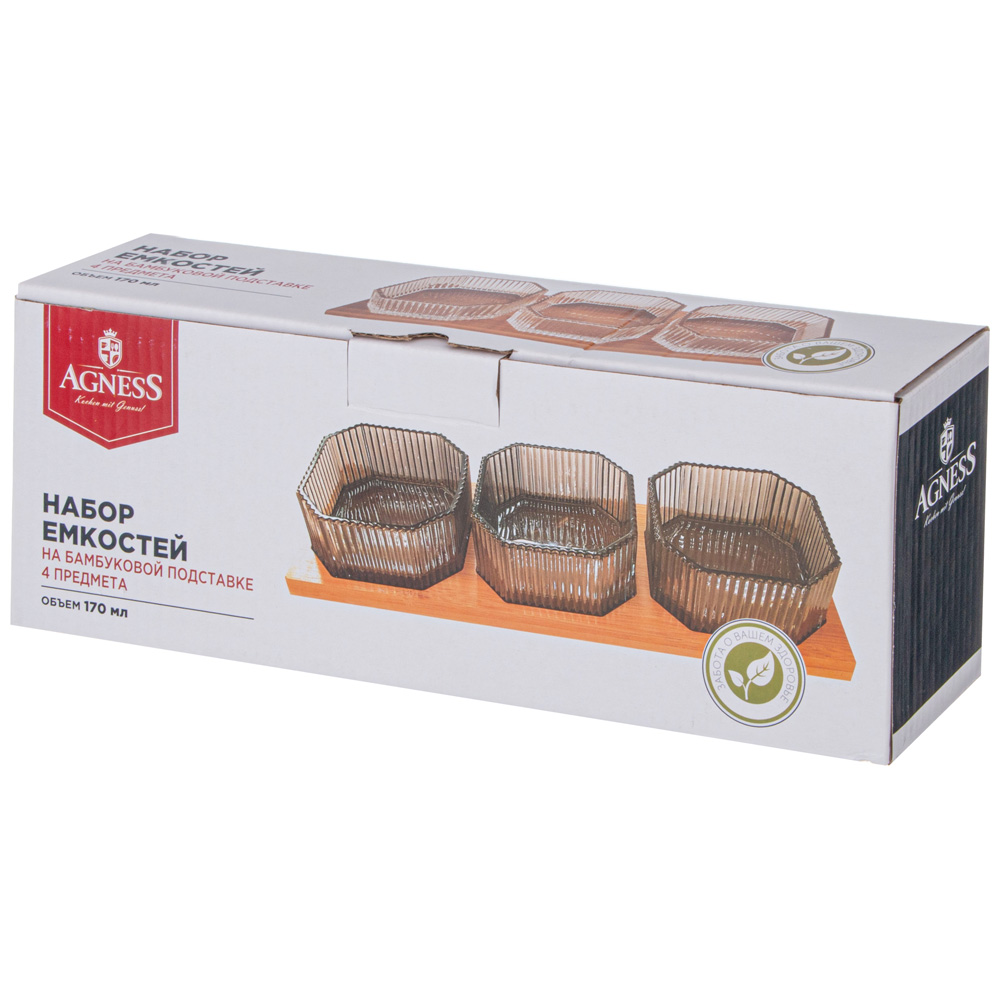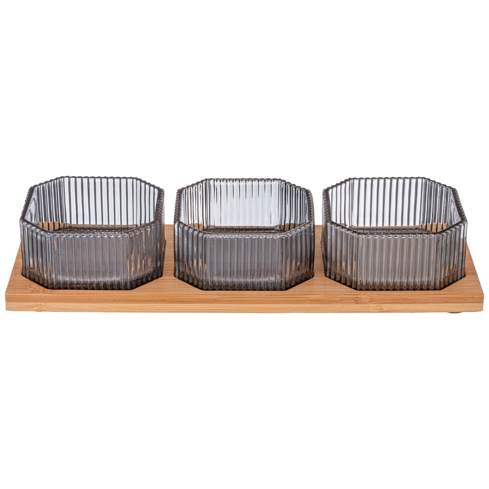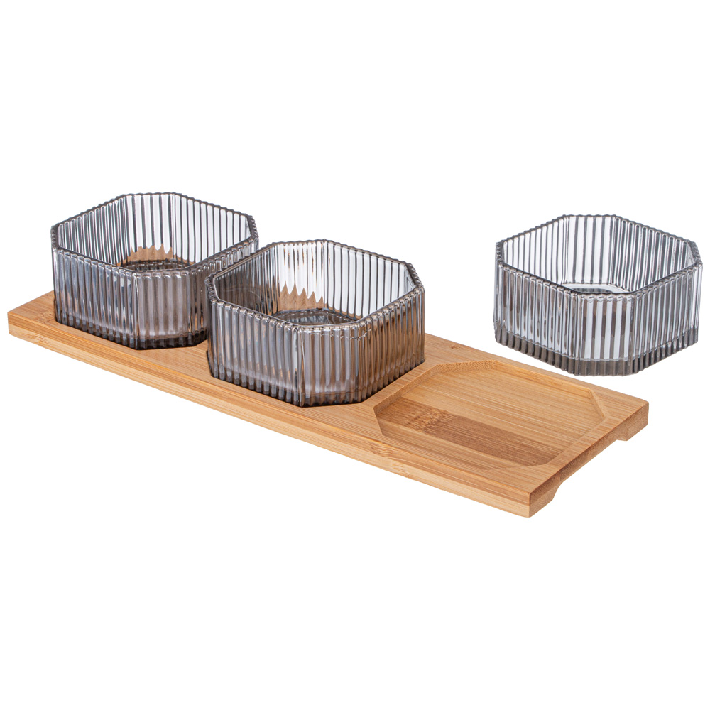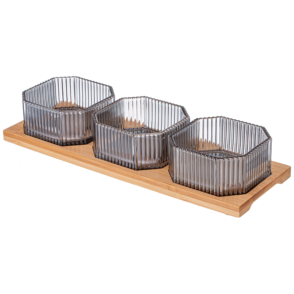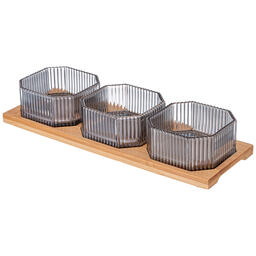 НАБОР ЕМКОСТЕЙ ИЗ 3-Х ШТУК "PERFO" 8,5*4СМ НА БАМБУКОВОЙ ПОДСТАВКЕ 887-262