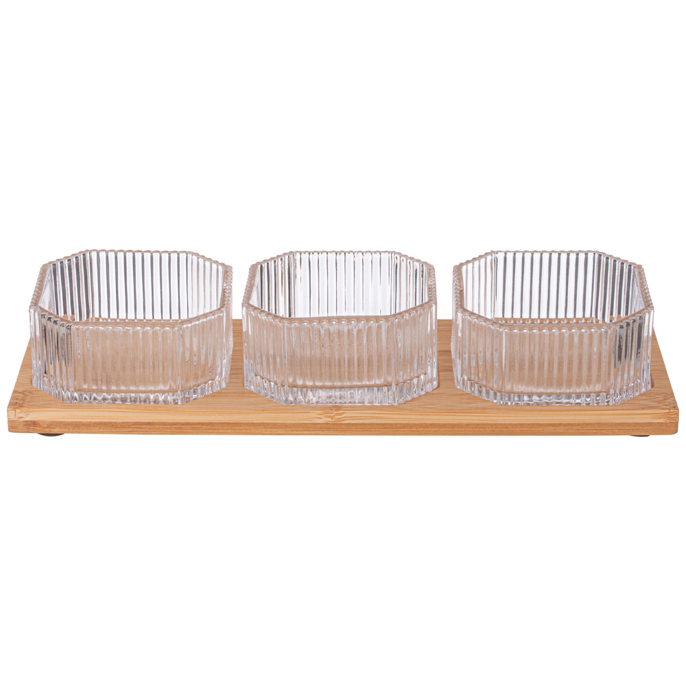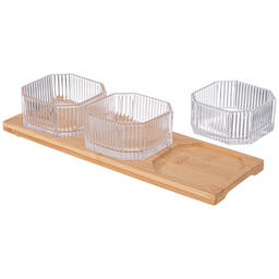 НАБОР ЕМКОСТЕЙ ИЗ 3-Х ШТУК "PERFO SMOKY" 8,5*4СМ НА БАМБУКОВОЙ ПОДСТАВКЕ 887-263