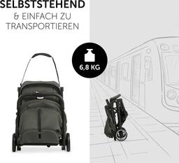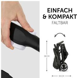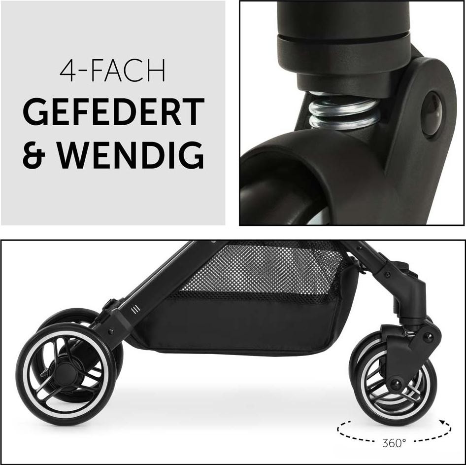 Завдяки амортизаційній підвісці та стійким до проколів колесам ваша дитина отримає комфортну поїздку. Швидке маневрування торговим центром також стає дитячою грою завдяки обертовим переднім колесам. Коли ваша дитина хоче спати, ви можете повністю відкинути спинку однією рукою. Сонцезахисний навіс із захистом від ультрафіолетового випромінювання 50+ дає приємну тінь, а сітчасті виходи забезпечують свіже повітря.
