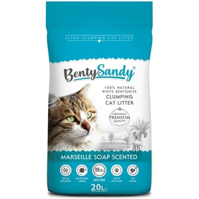 Завдяки складу зі 100% натурального білого мінералу бентоніту та аромату марсельського мила, це очищувач і підходить для тривалого використання котячих туалетів. Високоякісний білий бентоніт тримає неприємні запахи під контролем природним шляхом, аромат марсельського мила, який з’являється під час зволоження бентоніту, приносить приємний і чистий запах у навколишнє середовище. Бентонітовий наповнювач демонструє чудову продуктивність завдяки високому затиску. Розмір гранул 0,60-2,38 мм. Бентонітовий наповнювач доступний у розмірах 5 л, 10 л та 20 л.