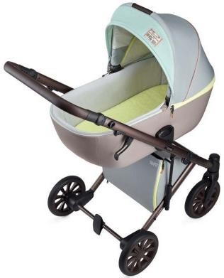 Комплектаціяшасі (рама+колеса), люлька, прогулянковий блок, матрац для люльки,,. дощовик, москітна сітка, чохол для ніг до прогулянкового сидіння, кошик для покупок, сумка – рюкзак для мами, еко-пляшечка з сумкою