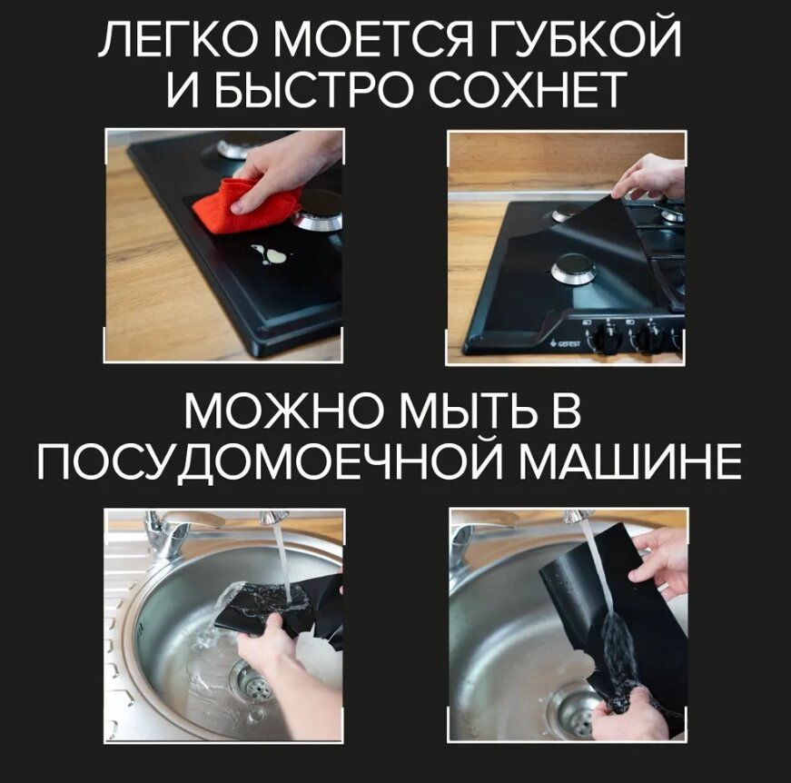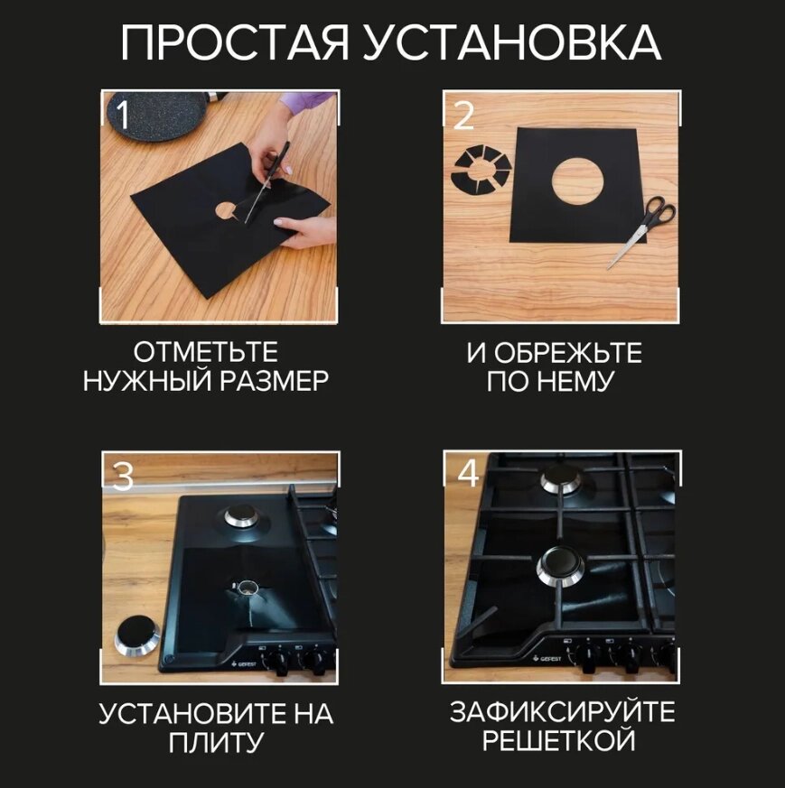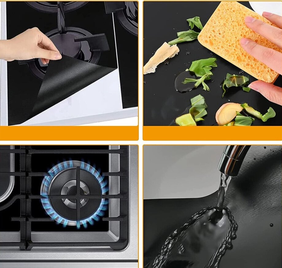 Коврик для газовой плиты 4 шт. Набор антипригарных многоразовых ковриков 27х27 см.