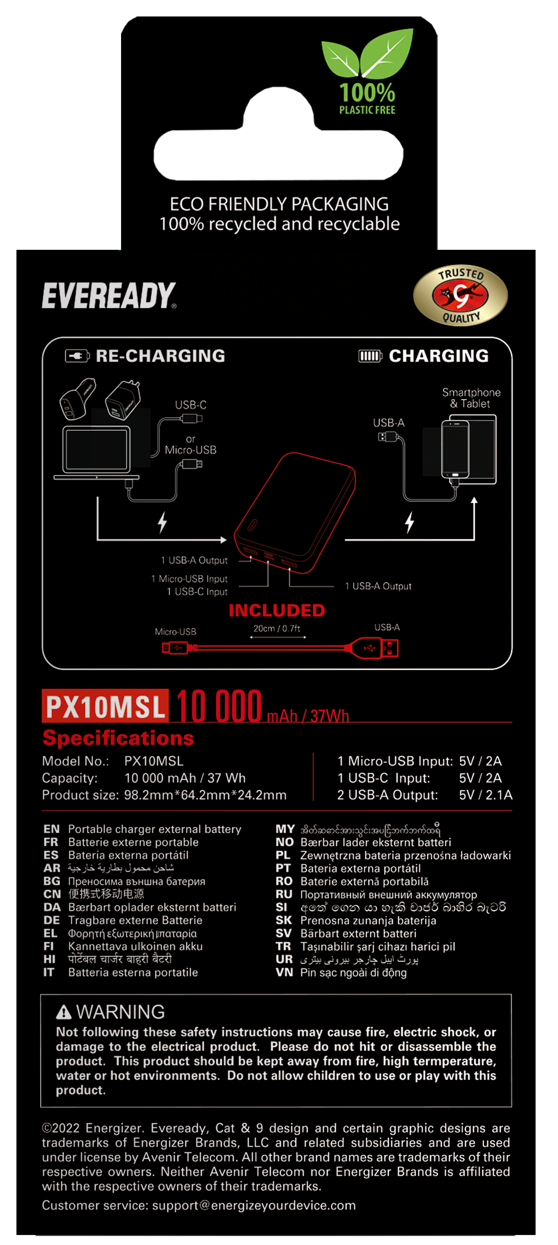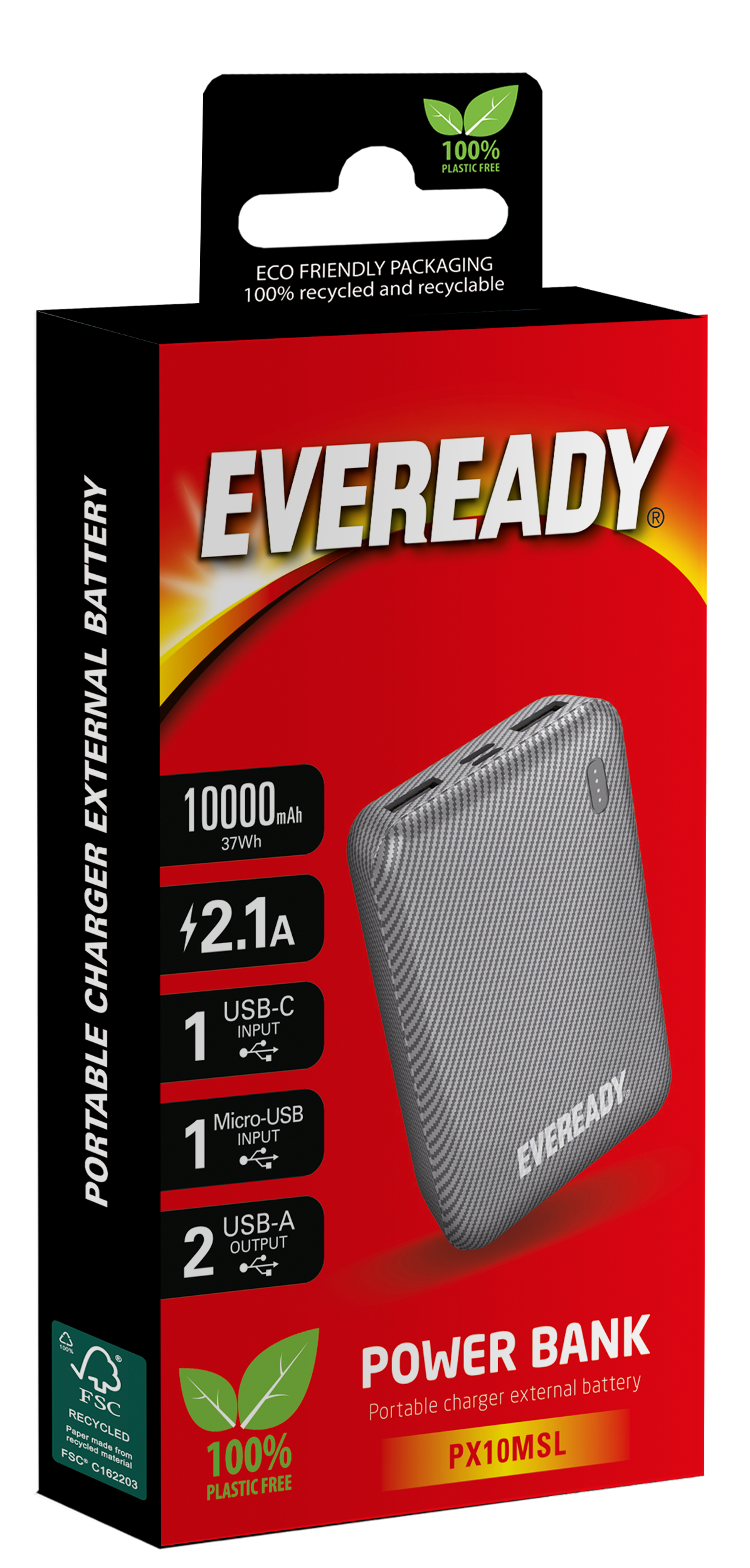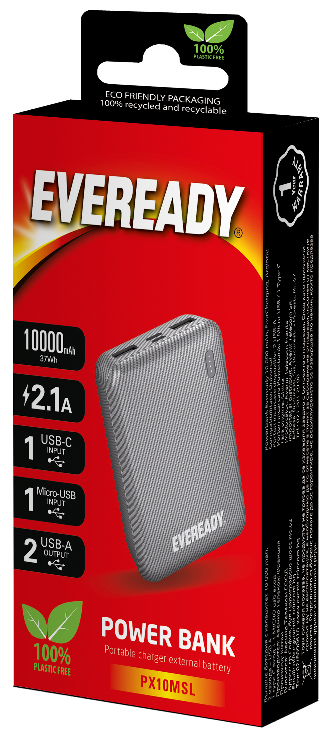 Портативное зарядное устройство Eveready PX10M - 10000 mAh Mini (Silver)