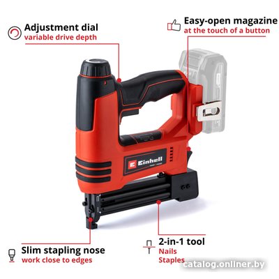 • Комплектация - 300 гвоздей (32 мм) - 300 скоб (19 мм)- шестигранный ключАккумулятор и зарядное устройство продаются отдельно.