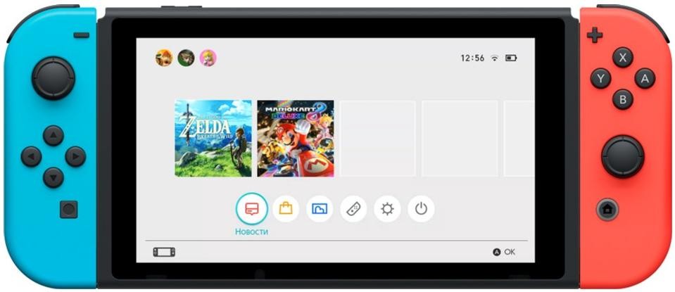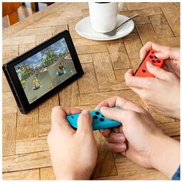 Родзинкою Nintendo Switch є контролери Joy-Con. Їх можна використовувати як разом, так і окремо. В автономному режимі контролери прикріплюються до планшета, даючи насолоджуватися грою самому. Від'єднавши їх від корпусу та передавши один одному, ви отримуєте можливість грати вдвох. Джойкони на спеціальній ручці набувають форми класичного геймпаду, що зручно під час домашнього використання.