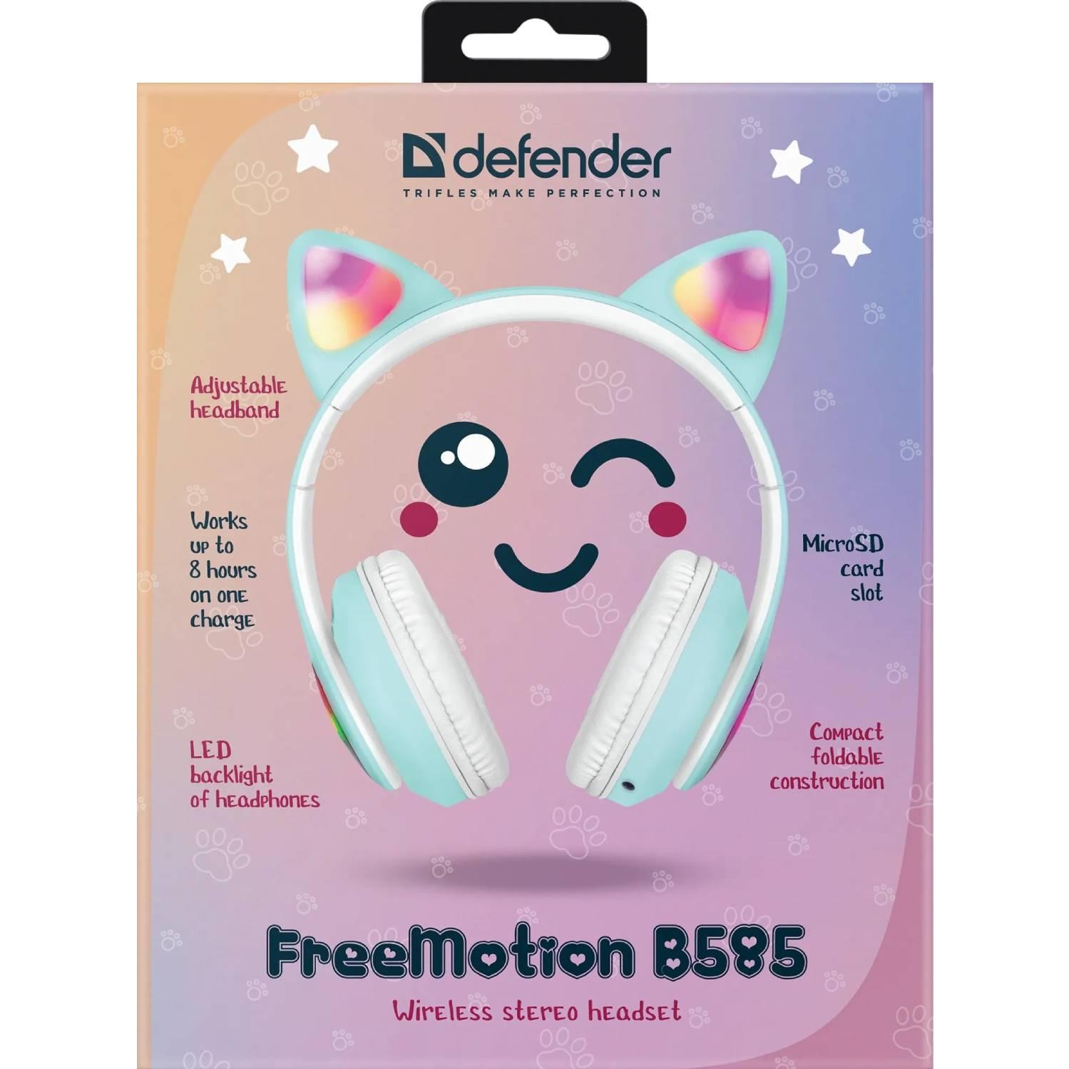 Навушники з мікрофоном Defender FreeMotion B585 Bluetooth, з вушками LED, зелені