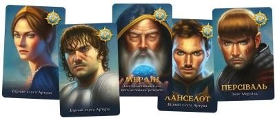 - Комплектація 14 карт персонажів, 10 карт квестів, 5 жетонів команд, 20 жетонів голосування, 5 маркерів очок, 1 Круглий маркер, 1 маркер треку голосування, 1 жетон лідера, 3 таблиці результатів, 2 карти лояльності, 1 жетон Леді Озера