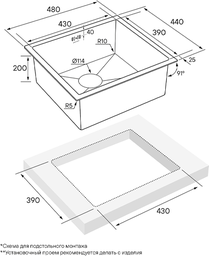 Способ монтажа: под столешницу, вровень со столешницей, в столешницу сверху