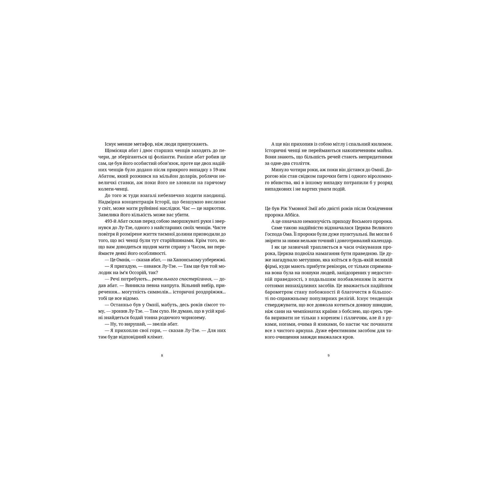 Чи існують боги, якщо в них ніхто по-справжньому не вірить? Адже це побожні віряни дають богам і дрібним боженятам силу й могуть. Великий Ом переконався в цьому на власному прикладі, коли зненацька виявив себе в тілі... звичайнісінької черепахи. Уявіть богове здивування, коли з’ясувалося, що єдиною людиною, яка в нього щиро вірує в цілій гігантській і складній структурі Церкви Великого Господа Ома, є трішки недолугий послушник Брута, який доглядає грядки з динями і квасолею. Йому й доведеться рятувати Омнію від амбіцій зловісного диякона Ворбіса та засилля Квізиції, зупинити війну з сусідніми країнами, а ще — захистити існування свого господа. Звучить непогано, як на простого послушника.