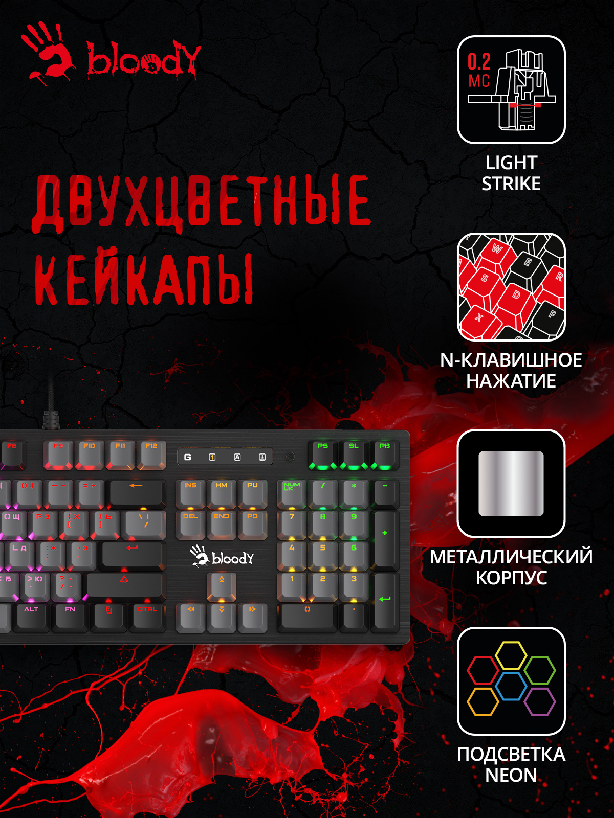 Клавиатура механическая A4Tech Bloody B828N Проводная серый, B828N (GREY+BLACK)
