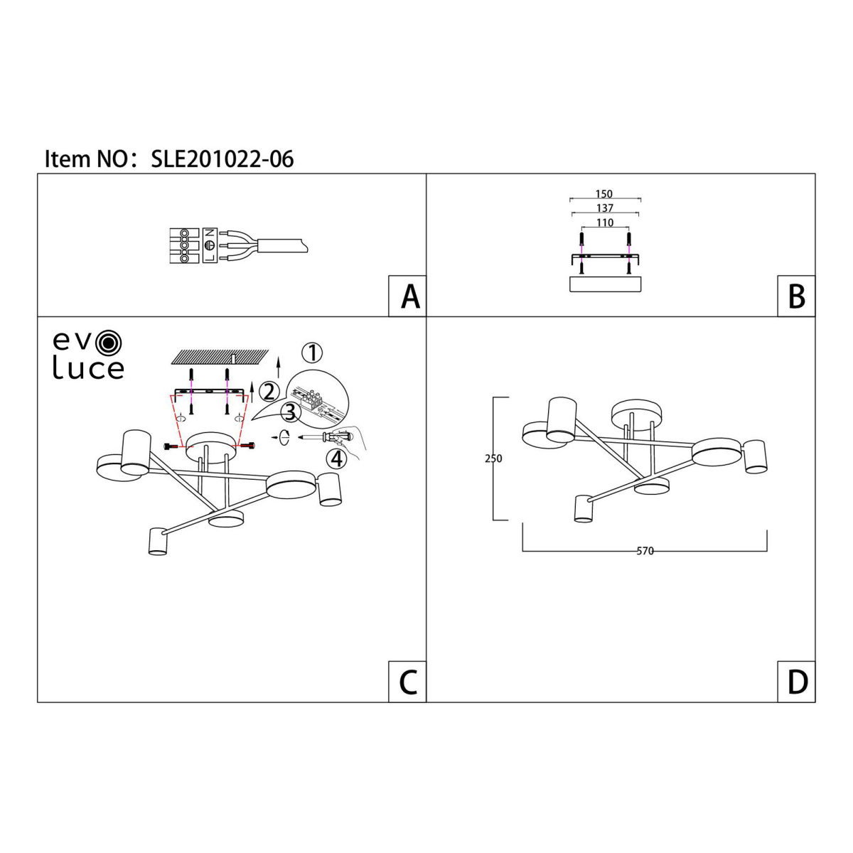 Светильник потолочный EVOLUCE SLE201022-06 золотистый/золотистый (6*7Вт, 4000K, LED)