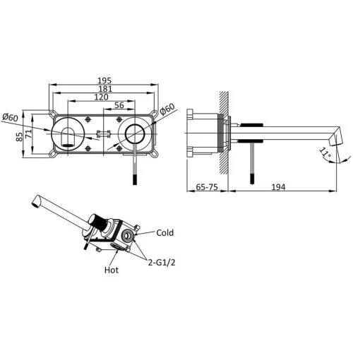 • Длина излива, мм 194
