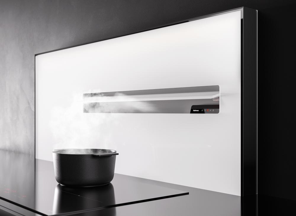 Крепление вытяжки к стене — стандартное для многих моделей, ими удобно управлять, так как кнопки находятся на расстоянии вытянутой руки. Обратите внимание на цветовые сочетания модели Falmec AIR WALL, чтобы органично вписать ее в свою квартиру. Оттенок корпуса: под навес вашего фасада.