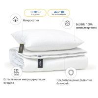 EcoSilk сміливо можна назвати доступним шовком, має всі характеристики цього наповнювача. Шовк, як сировина, вважається одним із найкращих для виробництва дорогих високоякісних постільних речей. Він антиалергенний, приємний на дотик, має високу терморегуляцію.