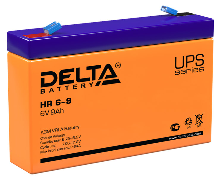 Delta Аккумуляторная батарея для ИБП, AGM, срок службы - 8 лет, HR 6-9 (6V/9Ah)