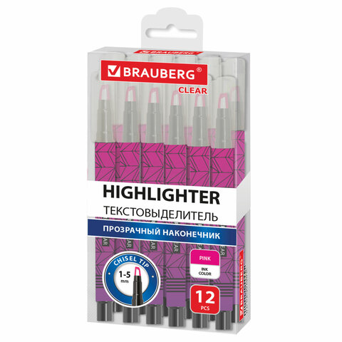 Текстовыделитель с прозрачным наконечником BRAUBERG Clear, РОЗОВЫЙ, линия 1-5 мм, 152425