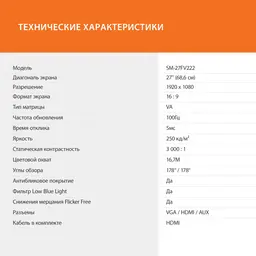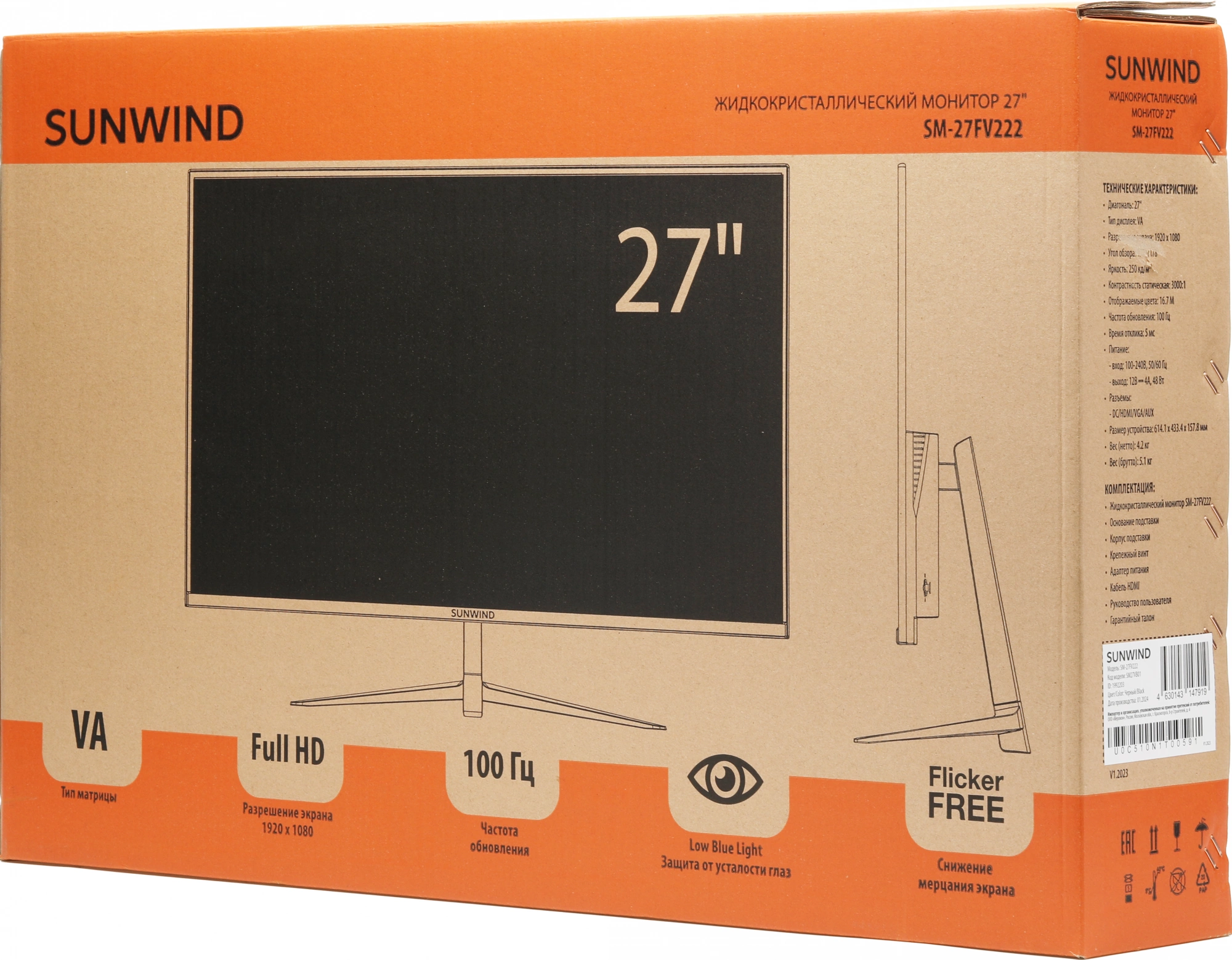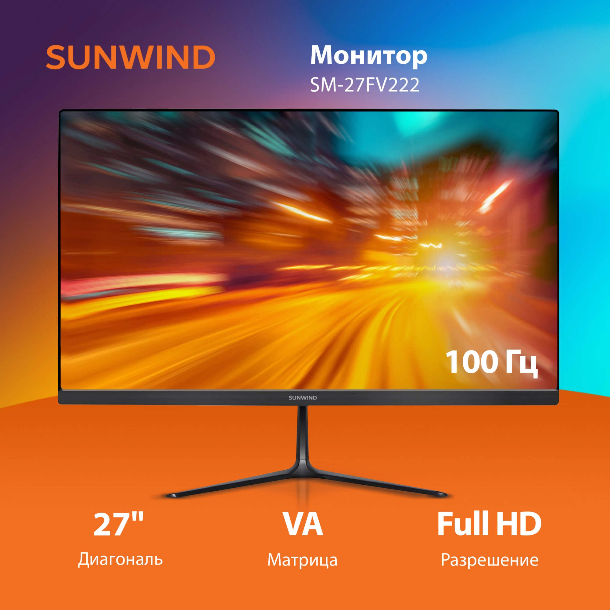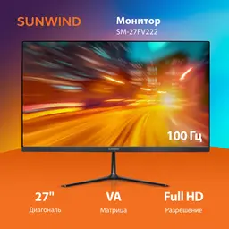 Монитор SunWind 27" SM-27FV222 черный VA LED 16:9 HDMI матовая 250cd 178гр/178гр 1920x1080 100Hz G-Sync VGA FHD 4.2кг